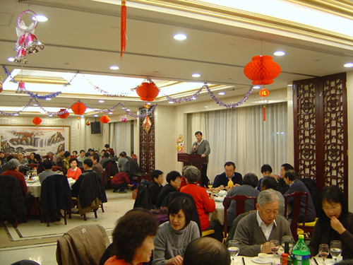 辞旧迎新,共庆佳节, 2010年春节北京核医学会新春团拜会在热烈、温馨的气氛中召开。团拜会由中华医学会核医学分会王铁副主任委员主持,北京核医学分会李方主任委员及中华医学会核医学分会田嘉禾主任委员以及中华医学会北京分会部分领导参加团拜会并致辞。在京的核医学委员,青年委员和技术专业组成员100余人欢聚一堂,辞旧迎新,共贺新春佳节。