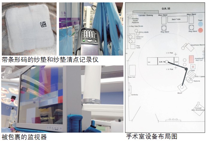 3、考虑周到,自我保护。BWH手术室的腹腔镜监视器是悬挂式,监视器边缘包裹了一层厚厚的海绵,这一细节减少了医护人员和仪器受损的危险。手术纱垫中除了有不透射线的显影条外,还有条形码,清点时用扫描仪自动记录,同时人工复核。这种被昵称为“超市收银台”的设备已经使用一年多,反映很好。手术间墙上贴有仪器设备布局图,不同人员使用时,按图索骥就能清楚仪器设备所在,手术结束后物归其位即可。良好的系统设计,事半功倍。