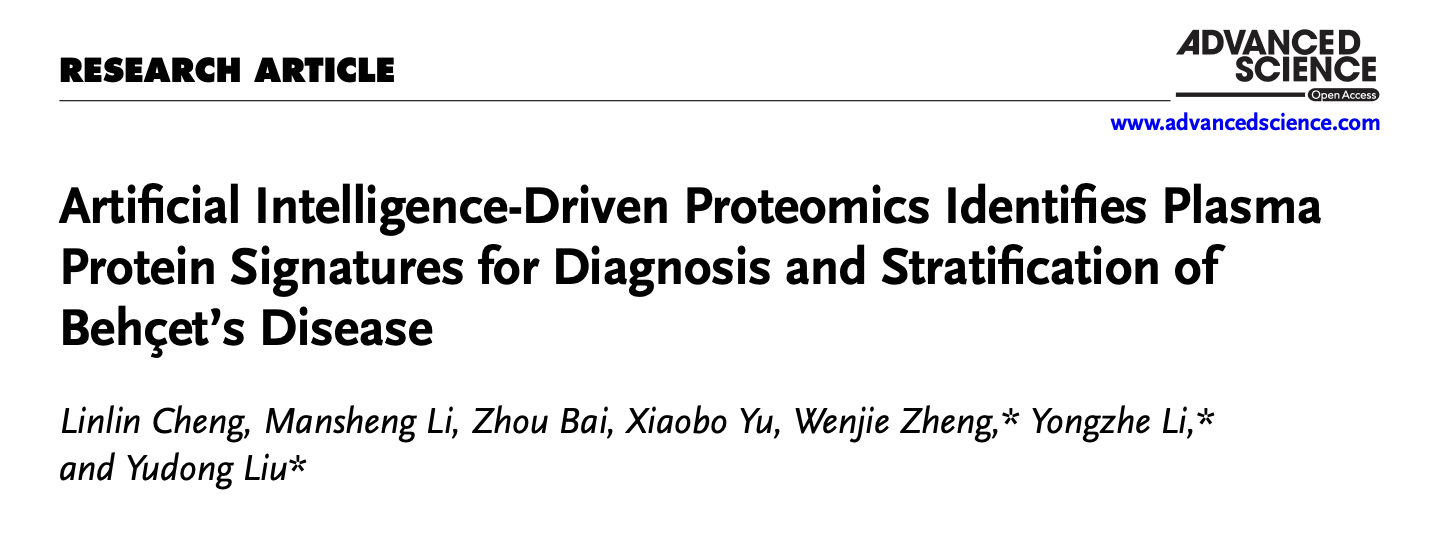 Recently, a collaborative team led by Li Yongzhe, Researcher in the Department of Clinical Laboratory, PUMCH; Zheng Wenjie, Chief Physician in the Department of Rheumatology, PUMCH; Liu Yudong, associate researcher at the National Center for Clinical Laboratories; and partners at the National Center for Protein Sciences have successfully applied, for the first time globally, artificial intelligence-driven proteomics to construct a diagnosis and stratification model for Behçet's disease (BD). This breakthrough offers new strategies for early diagnosis and precision treatment of the condition. The findings were published in Advanced Science (IF=14.1), a leading international journal.