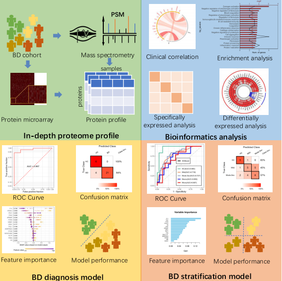 ▲Figures: “AI+proteomics” approach for developing BD diagnosis and stratification models